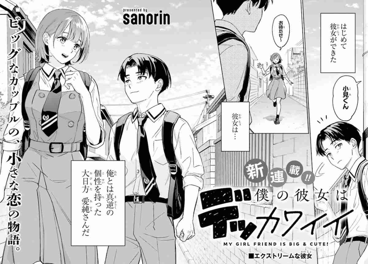「僕の彼女はデッカワイイ」は、小さい男子・小見くんと背が高い女子・大日方さんという、身長差があるカップルのラブコメディ。身長差をからかわれることを気にして、2人は付き合っていることを周りに黙っている。しかしクラスの男子たちが大日方さんのことを影で巨人と呼び「あの身長はない」と笑っているのが許せない小見くんは、大きい生き物だってかわいいと熱弁してしまう。でっかくてかわいい「デッカワイイ」彼女がいる男子の恋の物語が描かれる。