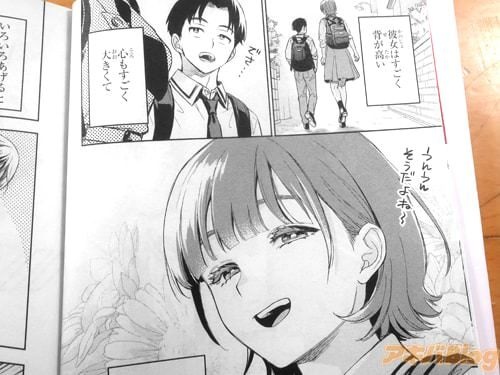 今回発売になった「僕の彼女はデッカワイイ」1巻【AA】には♯01~♯04と、読み切り版(♯00)も収録(目次)し、裏表紙は『ハイスペック高身長女子と、ヘタレちびっこ男子がいい感じでつきあっちゃう話』、オビ謳い文句は『大きな女の子の魅力をお教えします』で、アキバではゲーマーズ本店には色紙ありのコーナーもあった。