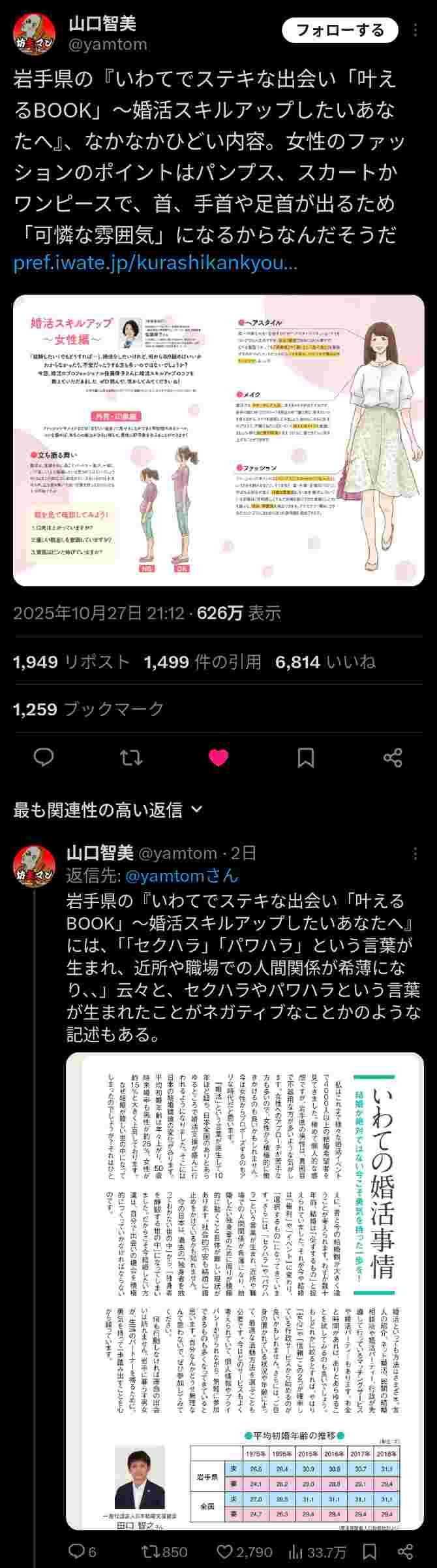 岩手県「婚活成功させたい女はスカートはいてメイクも清楚風に変えろ」→女発狂で大炎上www