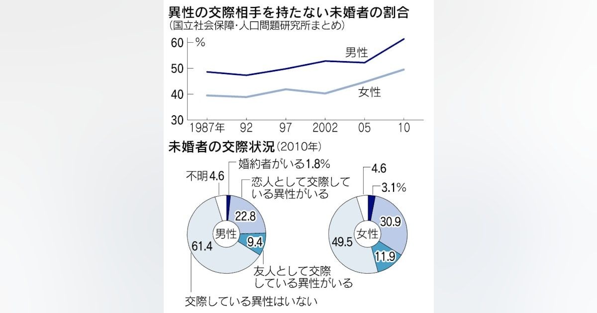 「彼女なし」6割突破 うち半数弱、交際望まず – 日本経済新聞