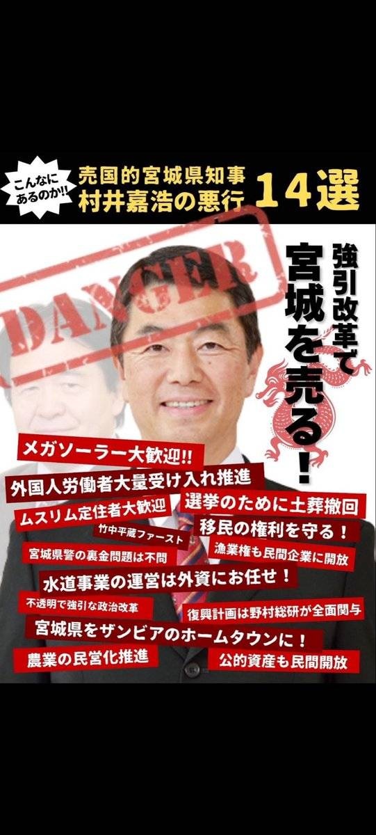 我々日本国民は、村井知事のこれまでの悪行に憤っています