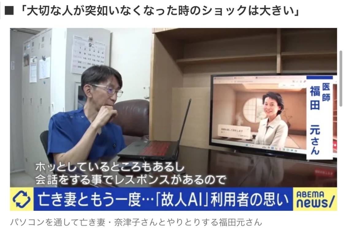 福田さんが故人AIサービスを利用した背景には、「末期まで病気に気付けなかったことを謝罪したい」「傷心の緩和、日々の活力剤」「娘(高校生)と祖母のグリーフケア」「医師として遺族ケアへの影響を知りたい」といった理由がある。
