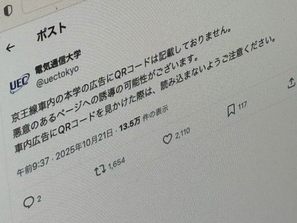 京王線の車内広告に“不審なQRコード” 電通大が注意喚起