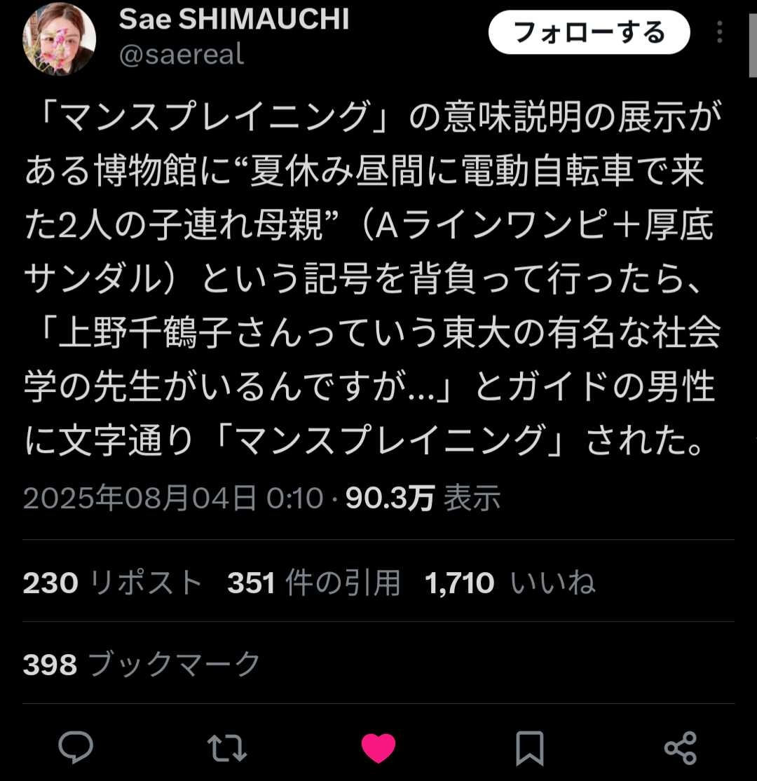 謎の劣等感を「これがマンスプレイニングですかぁ」