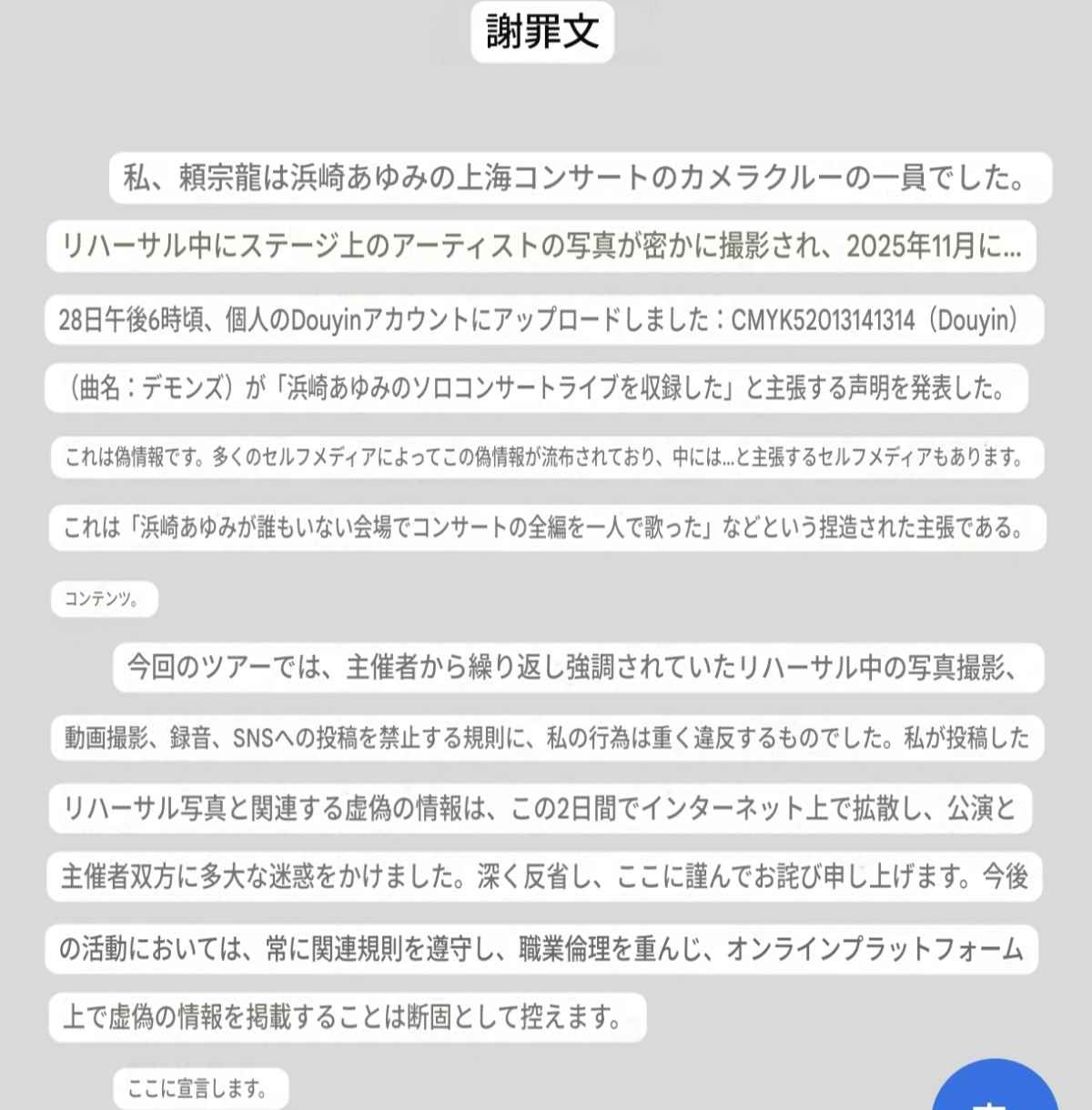 この謝罪文の主もよく分からんし