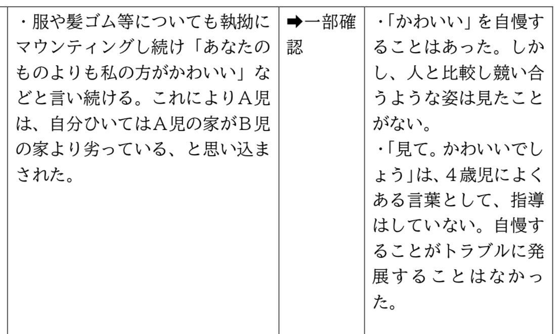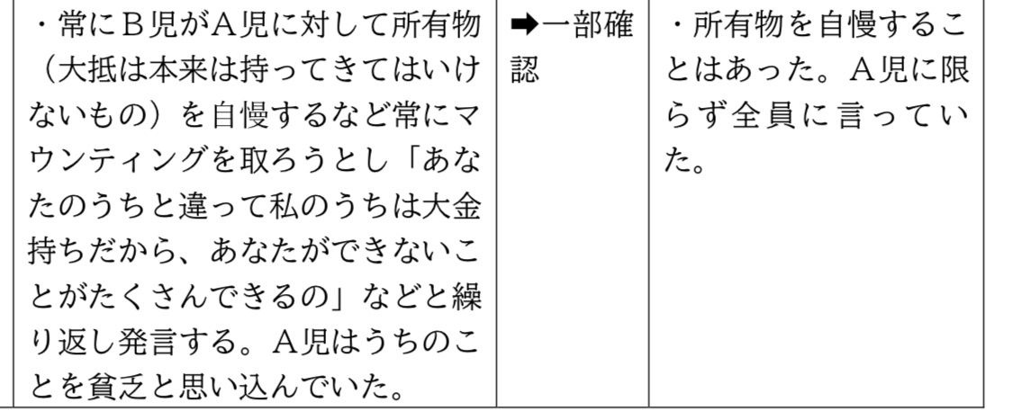 報告書によると、2人の幼児(A児とB児)はもともと同じ保育園に通っていたが、B児の強い口調や自慢などの言動によって、A児は登園を渋るようになり、区立幼稚園に転園した。