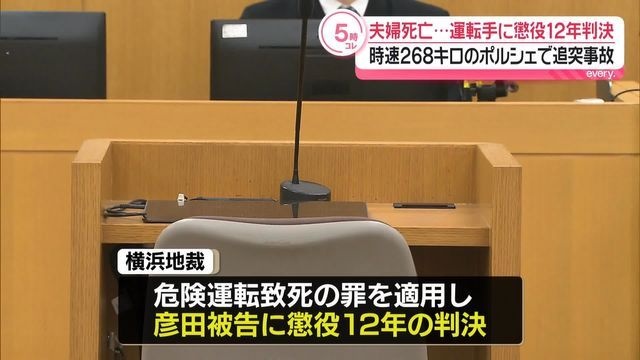 6年前、高級外車のポルシェを時速最大268キロほどで運転し、乗用車に追突し、夫婦2人を死亡させた罪に問われた男に対し、横浜地裁は懲役12年の判決を言い渡しました。 この事故は6年前の2020年8月