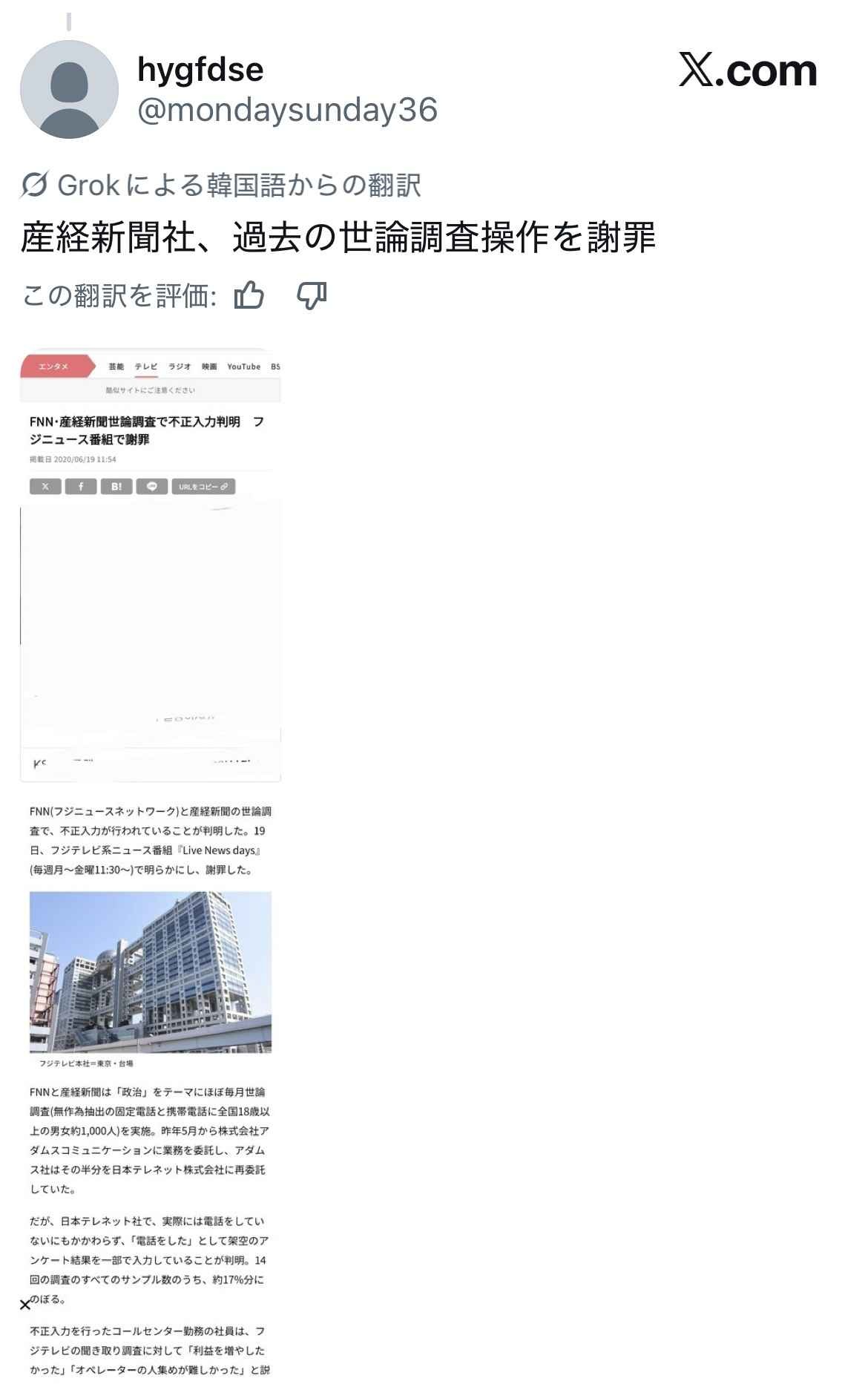 産経みたいな三流地方紙読んでるアホばかりじゃないのはわかって欲しい……