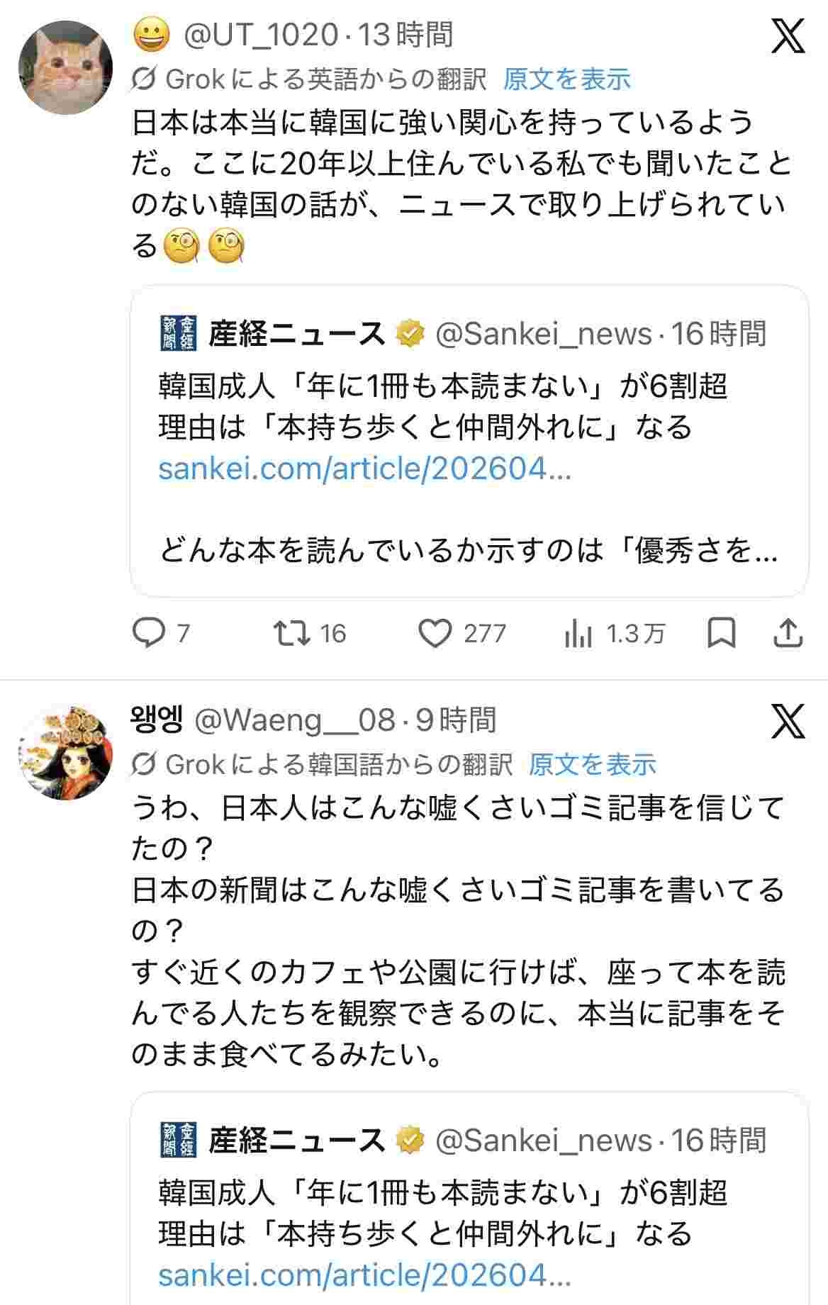 反韓、反中感情を煽ってるのが産経ってことがようやく知ってもらえるようになったか