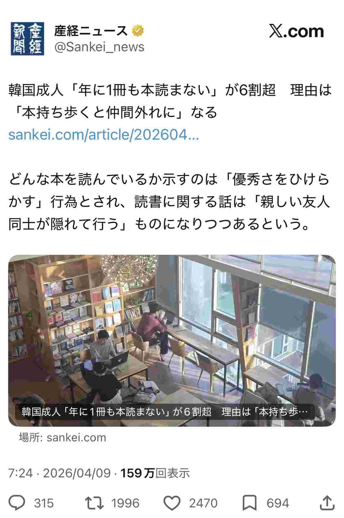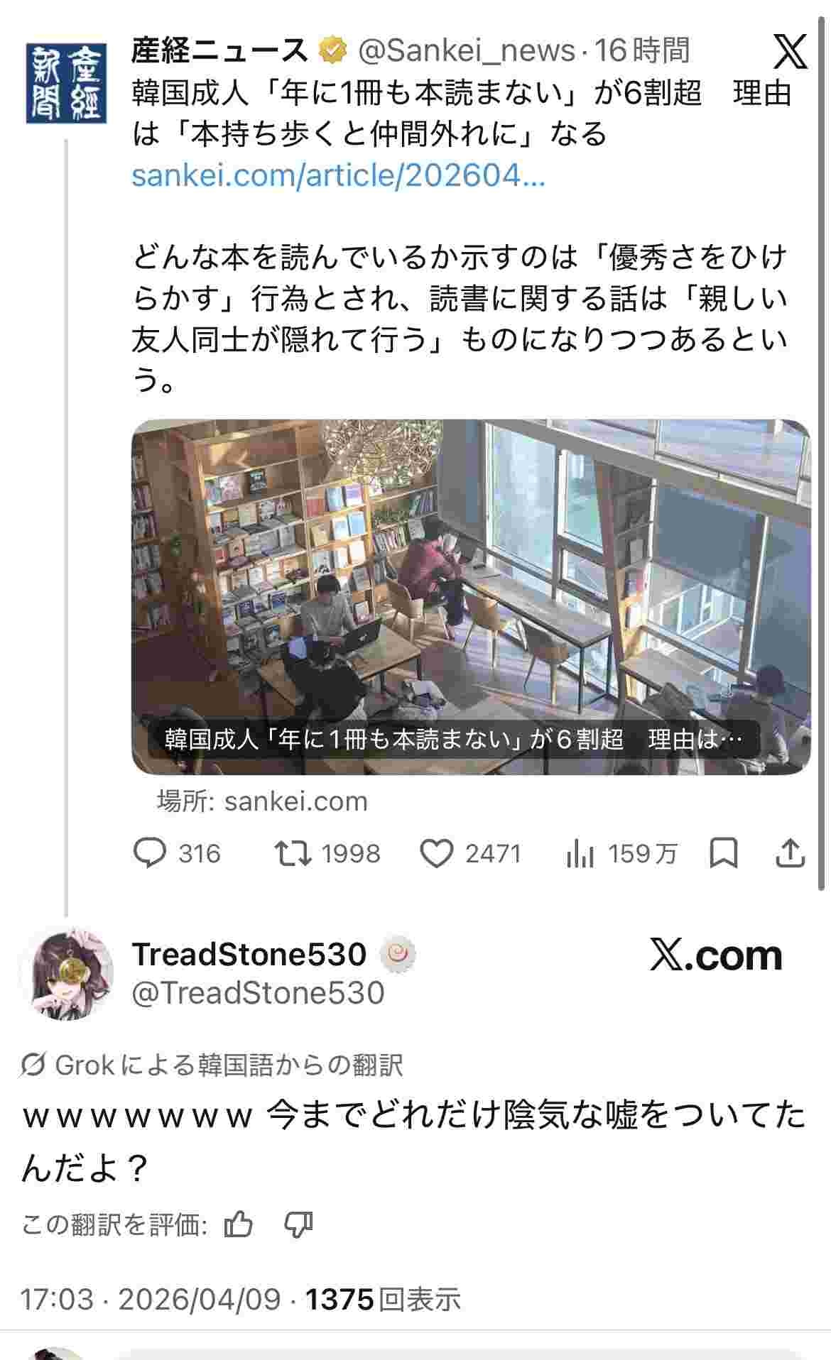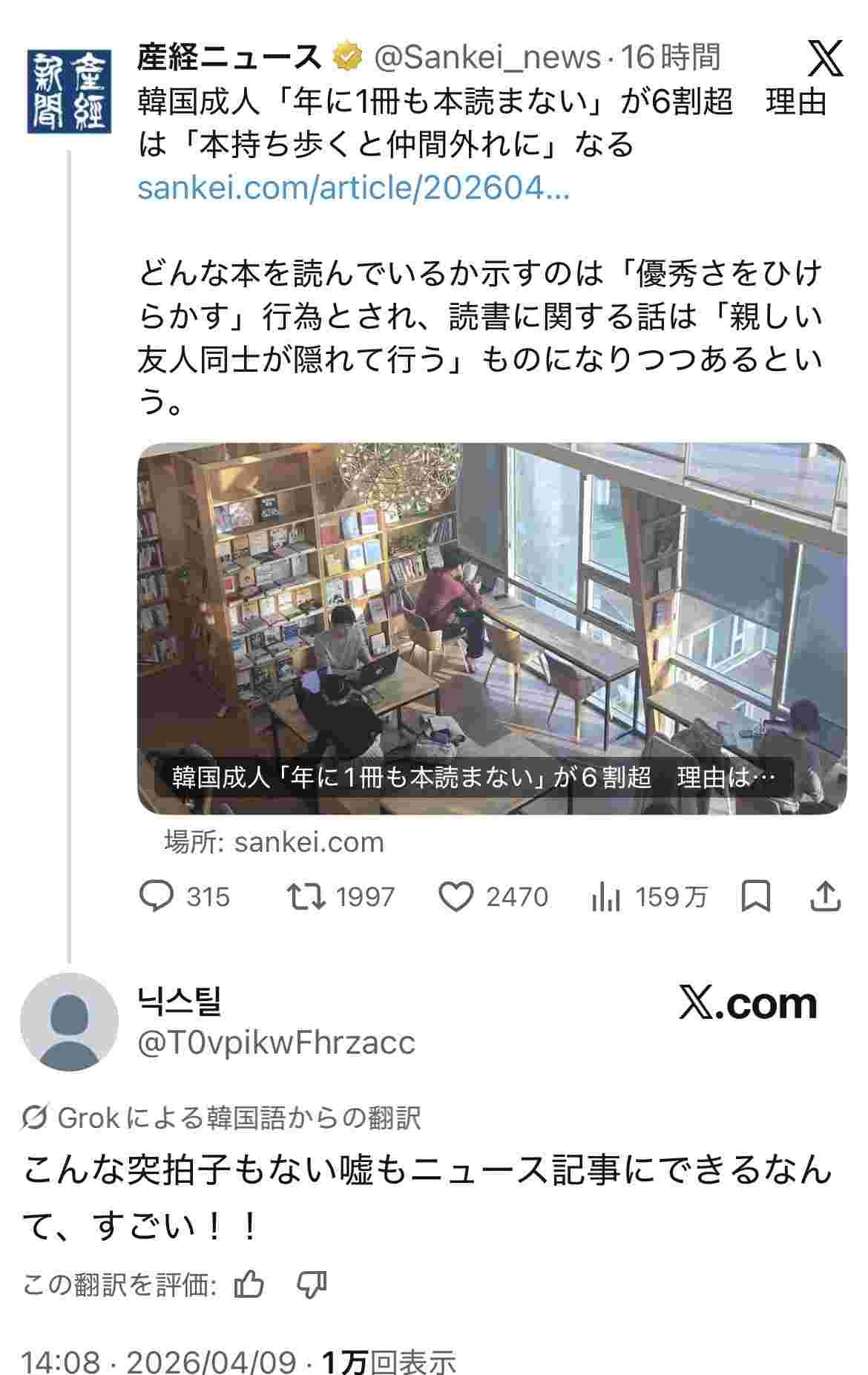 これ取材した本屋の店主が適当なことを言っただけなのでは?産経を養護するつもりはないけれど