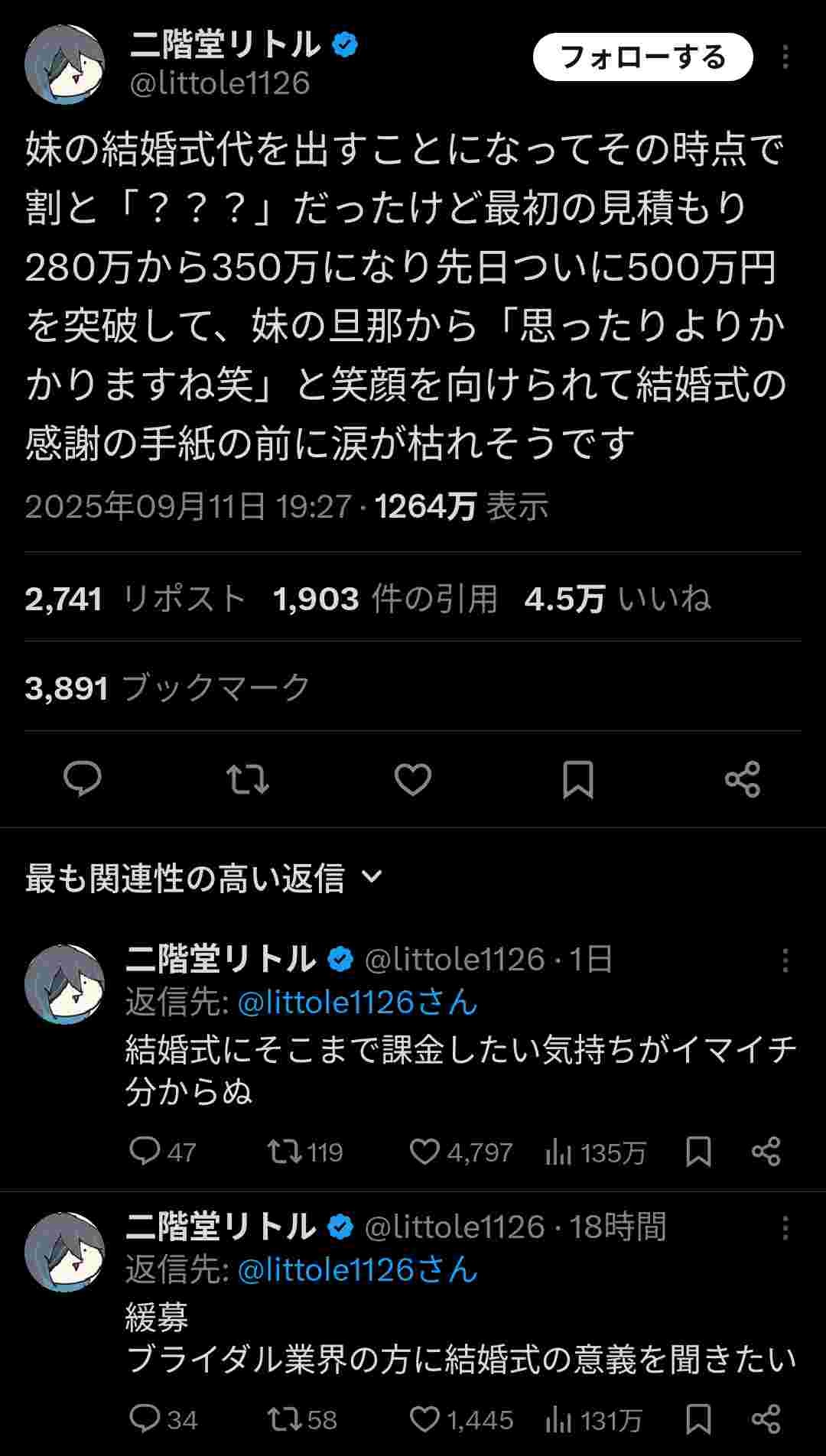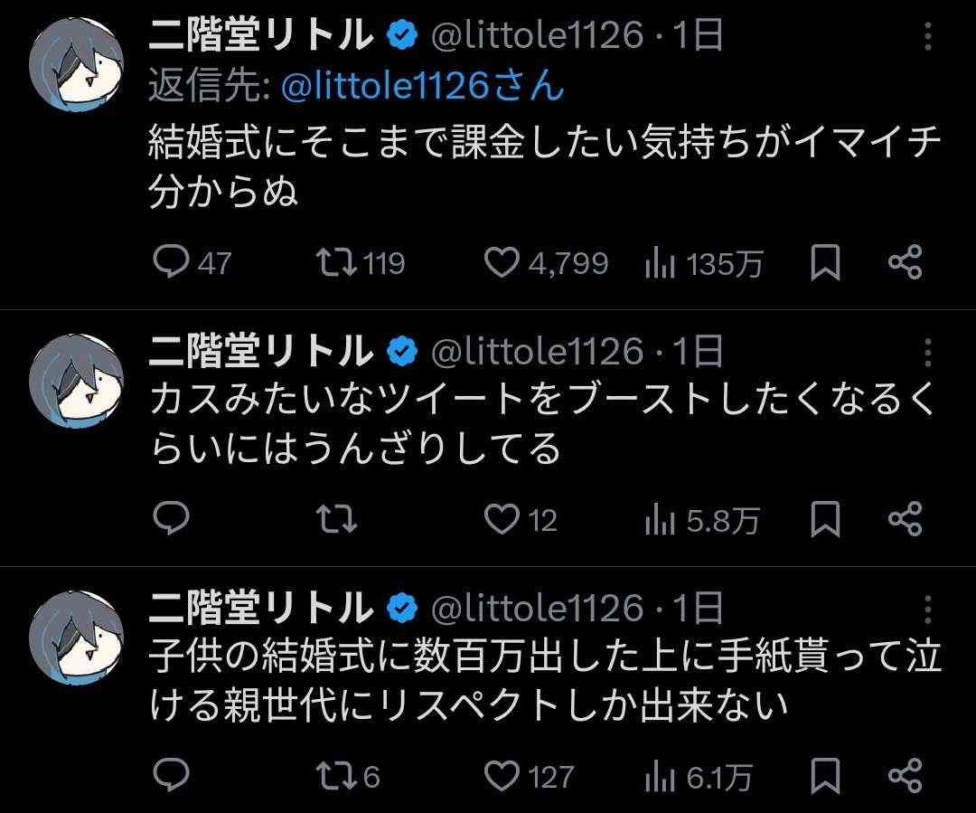 まあ、一生に一度だからって気持ちも分からんでもないけど、そこまで金かけるのはちょっと理解不能かもな。
