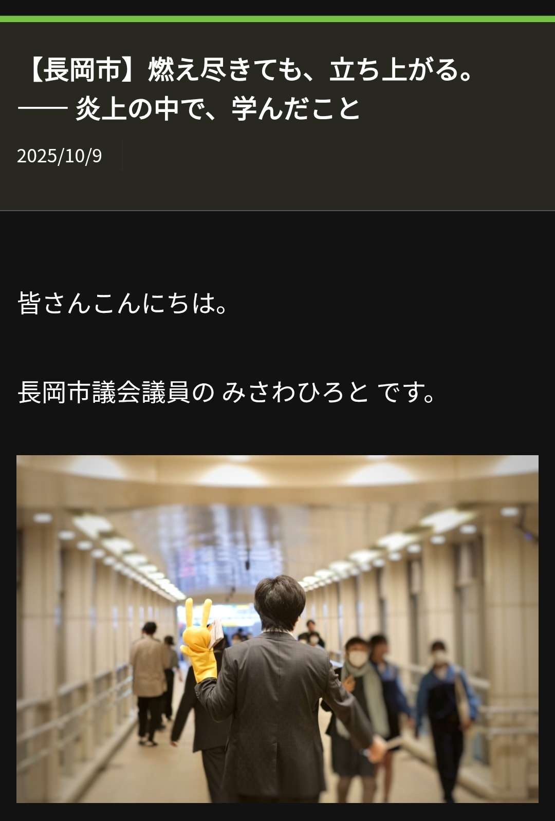 【長岡市】燃え尽きても、立ち上がる。―― 炎上の中で、学んだこと - みさわひろと(ミサワヒロト) | 選挙ドットコム