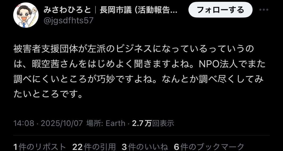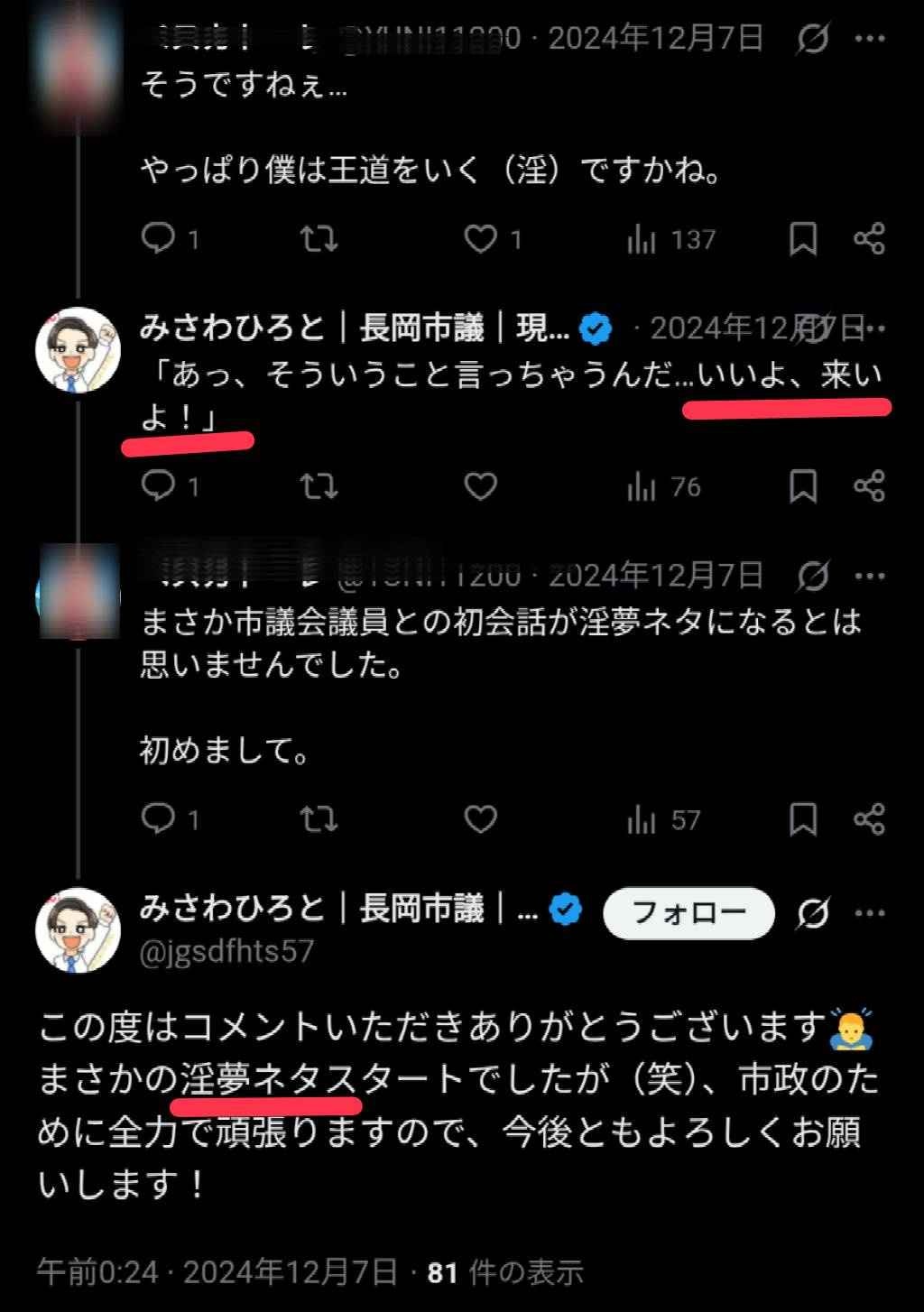 皆さんこんにちは。長岡市議会議員の みさわひろと です。 今日は、朝の蓮潟交差点で辻立ちをしました。少し長くなりますが、今の気持ちを正直にお伝えします。   今回の件について、弁明の余地はありません。そして、私自身も「あんな言い訳が通る」と思って発言したわけではありません。 ただ一つだけ――「中途半端に炎上するくらいな...