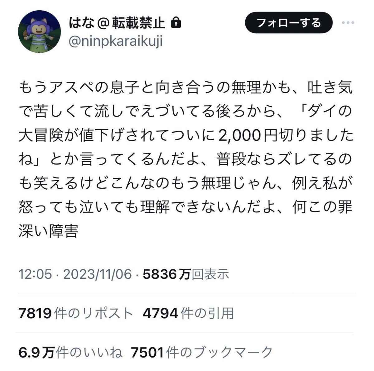 俺境界知能だけどなんでダイの大冒険で母親が発狂したのかわからないわ