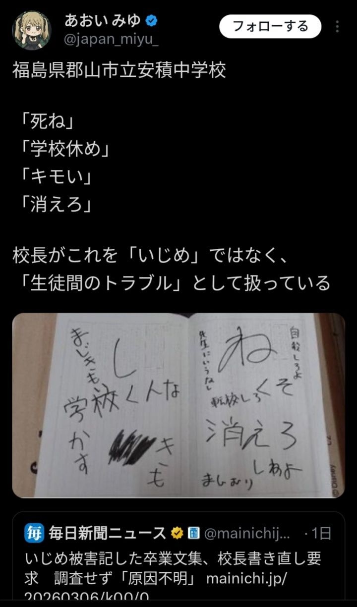 いじめって認定すると学校と教育委員会の減点になるからできることならいじめとは認定したくないよ~