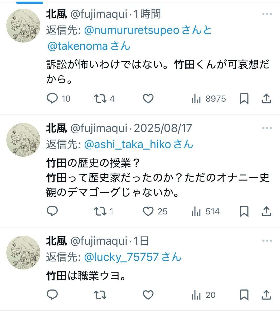 竹田恒泰さんが訴訟予告「職業ウヨ、オ●ニー史観のデマゴーグ」などの誹謗中傷に怒り😡