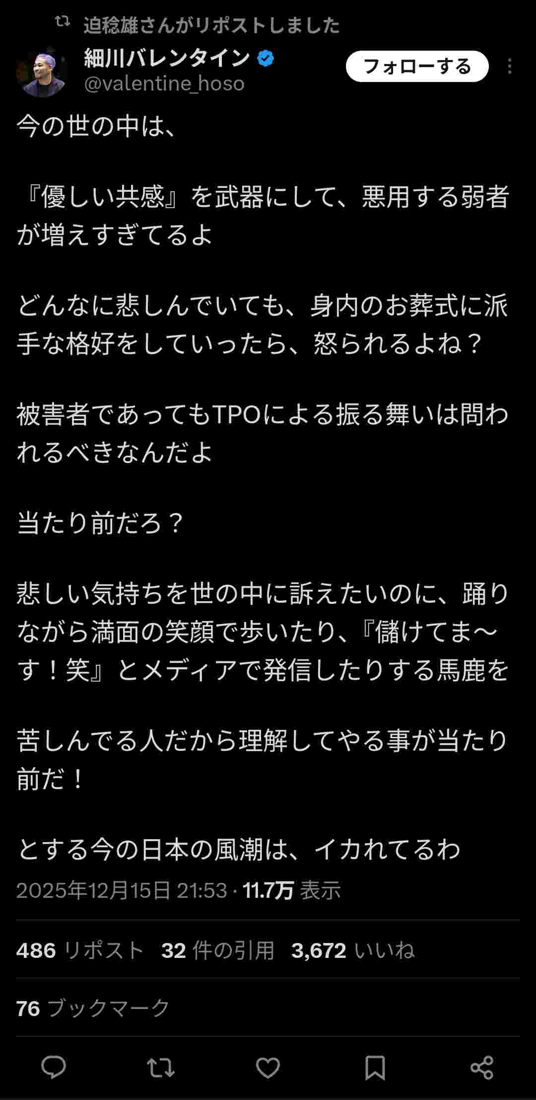 被害者であってもTPOによる振る舞いは問われるべきなんだよ