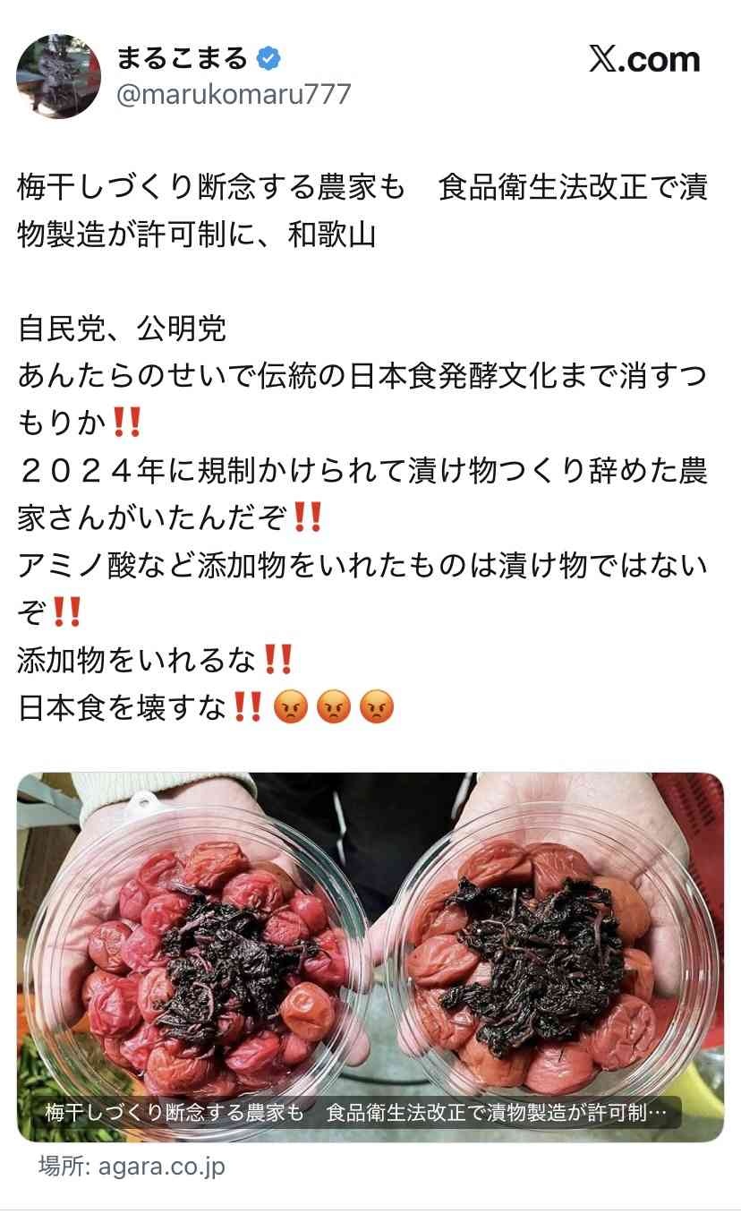 この規制で道の駅や畑とかで売ってる漬物ジャム味噌もろもろ消えたよな(笑)