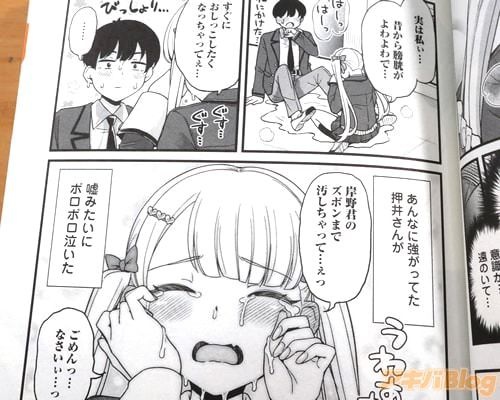 今回発売になった「クソザコボウコウ押井さん」2巻【AA】には第7話から第12話と、「おまけ漫画」を収録(もくじ)し、オビ謳い文句は『ボーイ・蜜・おしっ娘? ドキドキ青ションラブコメ』、『絶対に漏らせない膀胱(ヒミツ)を守り抜け!』で、裏表紙は『新たなおしっ娘、大襲来ッ!』、『秘密の関係に危機到来――!?危機(ピンチ)も尿意も乗り越えられるか!?』、『黄金色に輝くドキドキ青ションラブコメ』などだった。