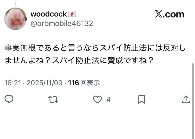 そもそも本当のスパイがスパイ防止法反対だぁなんて言うわけないやろと思うんやがな