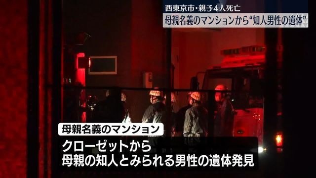 西東京市親子4人死亡 母親名義マンションに“知人男性遺体”(日テレNEWS NNN) – Yahoo!ニュース