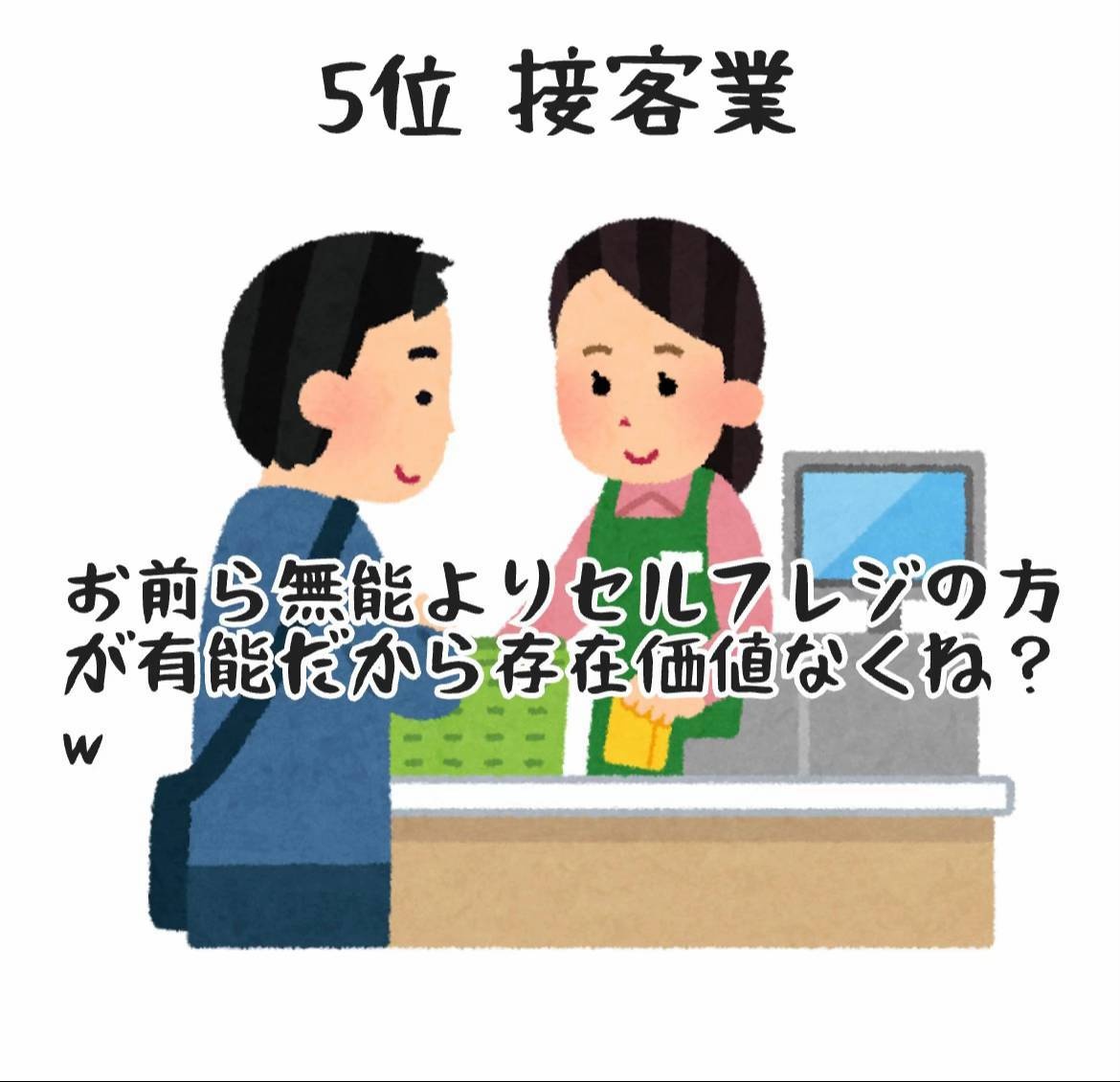 接客業でまず出てくるのはレジ打ちってのがなんか悲壮感漂うわ
