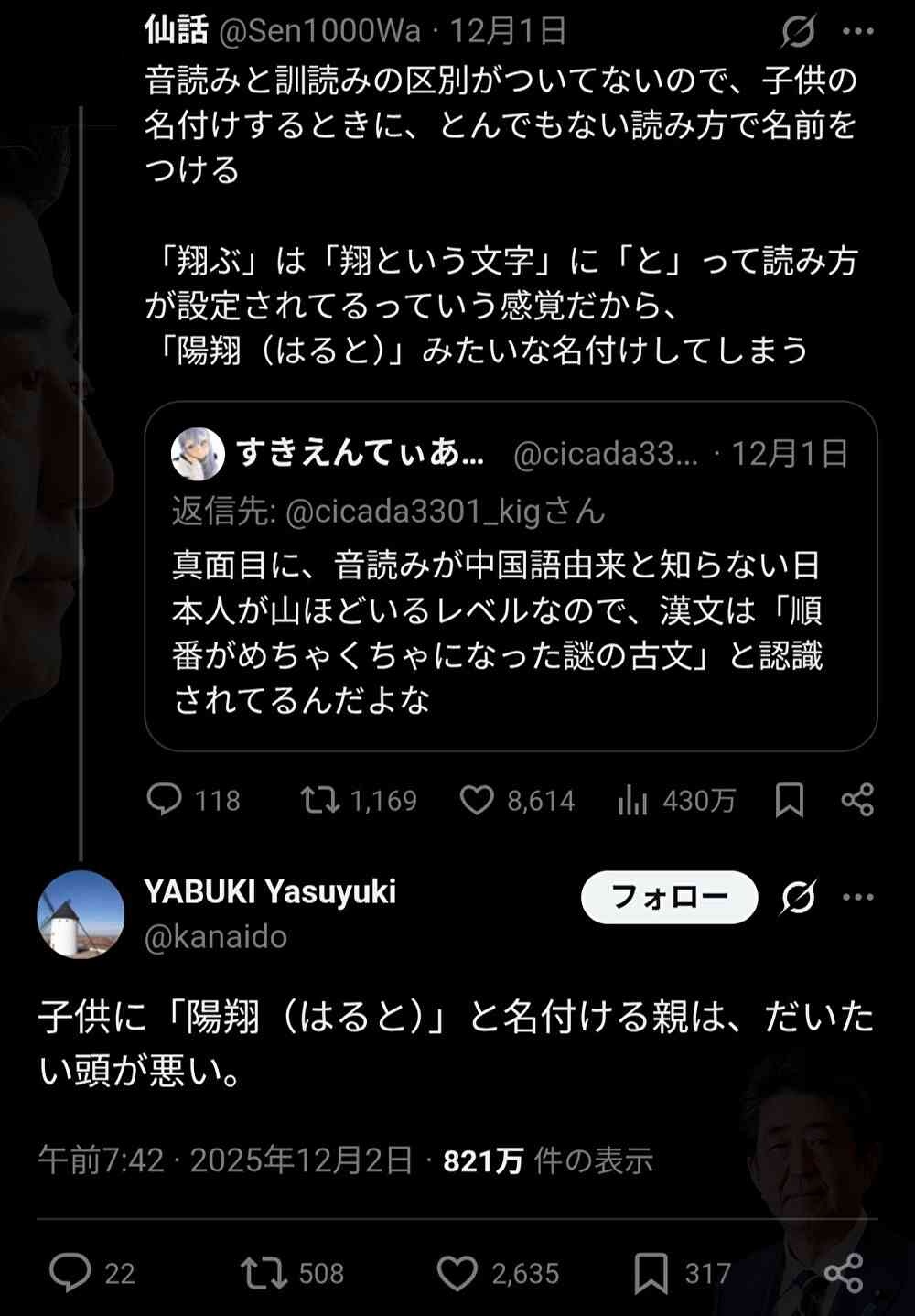 幼少期家が近所でよく遊んだ従兄弟に翔という字が使われててその姉の子供が陽という字を使っているのにいるのに同じ漢字を使うものなのか?