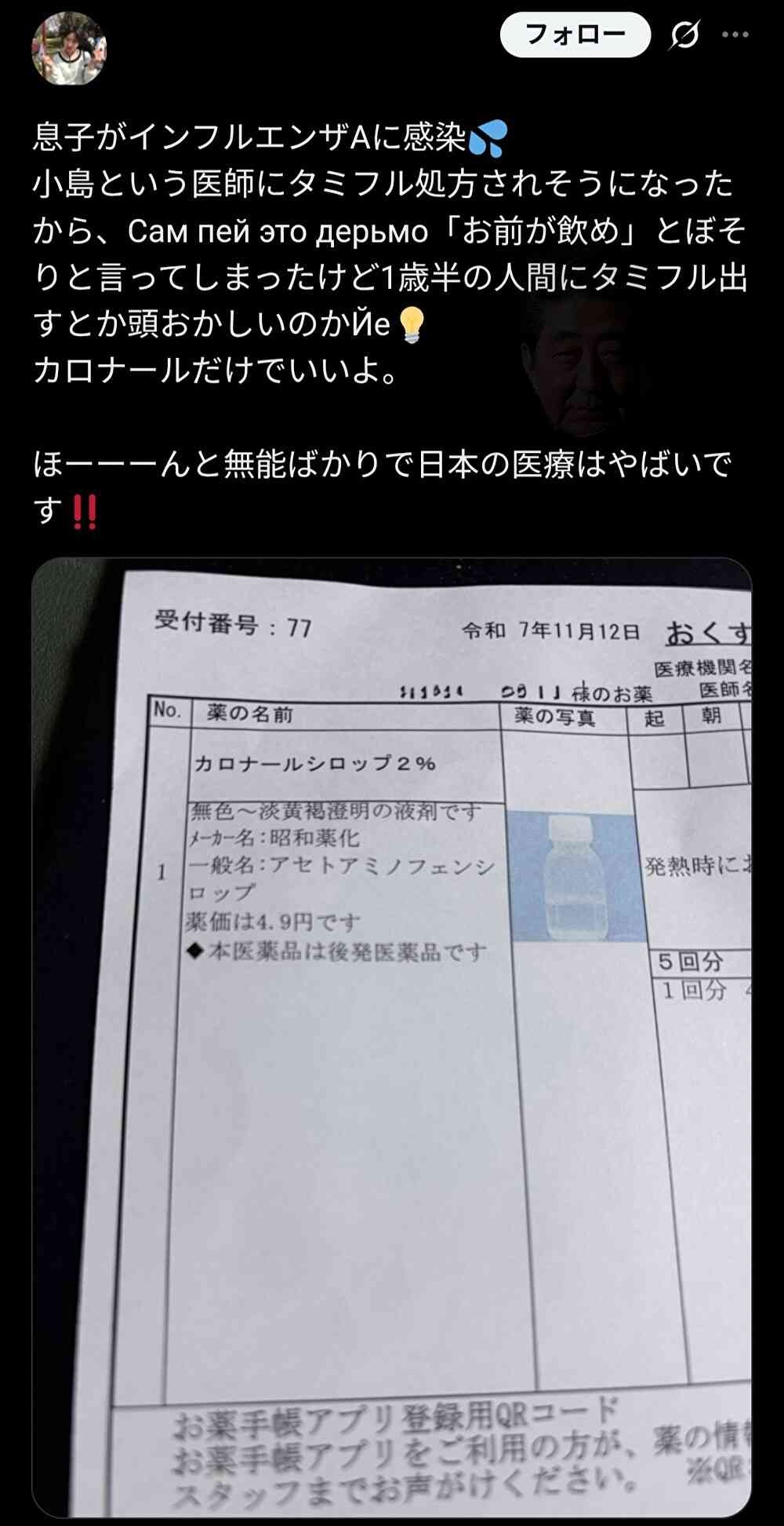 そもそもタミフル飲ませる気がないなら病院にかかる必要がない