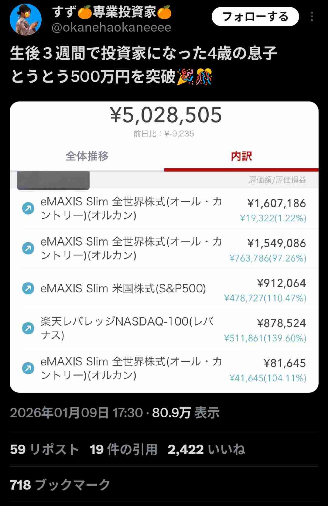 今の子供は親が子供の口座を作って投資してるかどうかで将来の人生が大きく変わりそうだよな