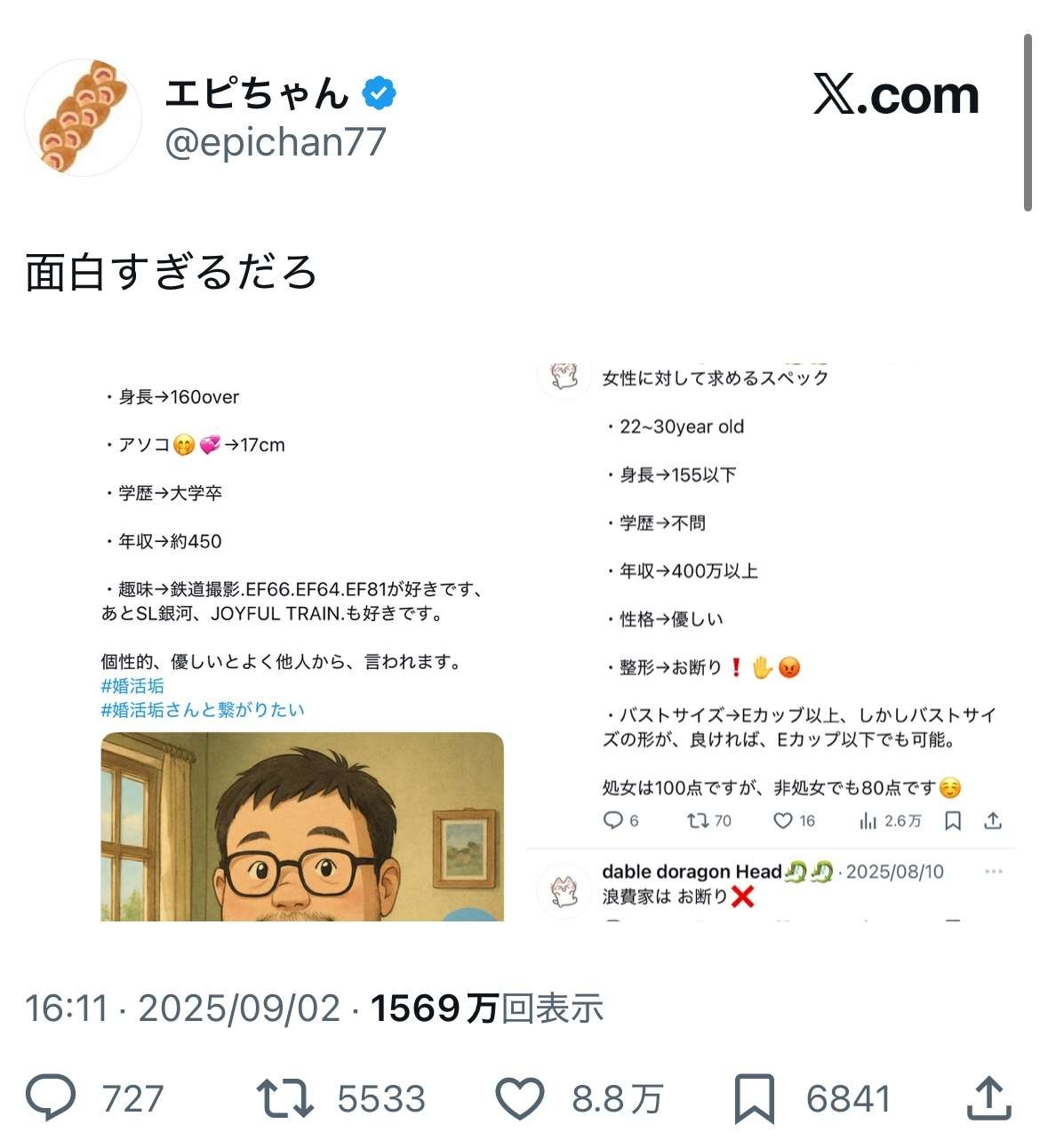 暇空がいるせいで、オタクの馬鹿過ぎる婚活プロフをネタと断言できない雰囲気あるな
