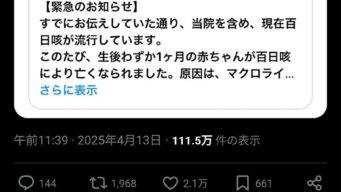 嫌儲 識者「生後一ヶ月の赤ちゃんが百日咳で亡くなる…妙だな🤔」