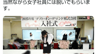 嫌儲 【画像】ソフト・オン・デマンドの入社式、新入女子社員は全員脱がなければいけない規則だった😭