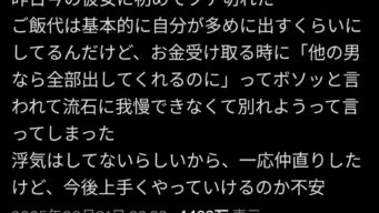 嫌儲 男「端数は俺が多めに払っとくから」彼女「他の男なら全部出してくれるのに」→男ブチ切れ