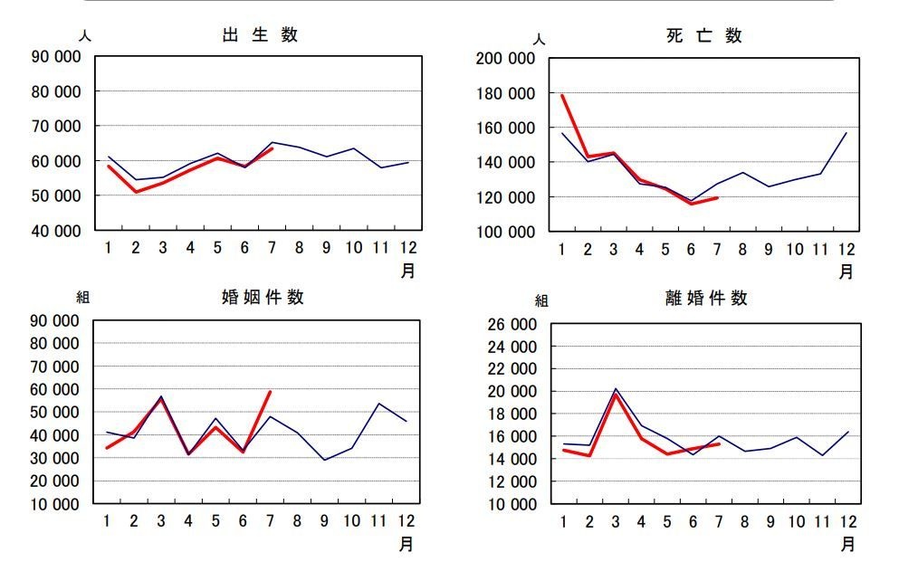 そのうち、日本における日本人についてまとめたものが人口動態統計月報(概数)であり、この月報(概数)に若干の修正を加えたものが人口動態統計年報(確定数)である。