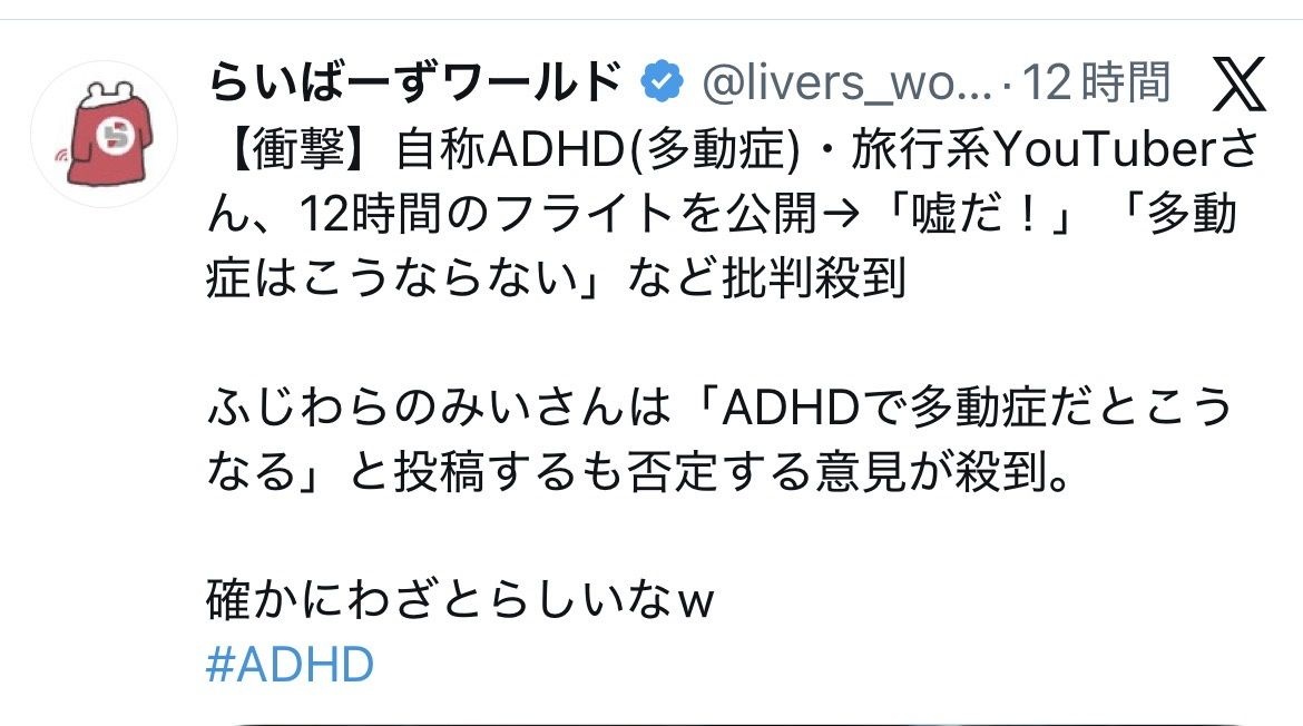 俺もADHDだけどなぁ