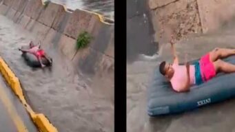 嫌儲 【動画】氾濫した用水路で泳ぐ陽キャwww