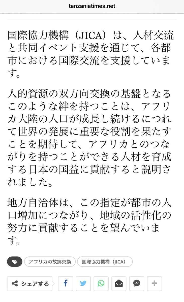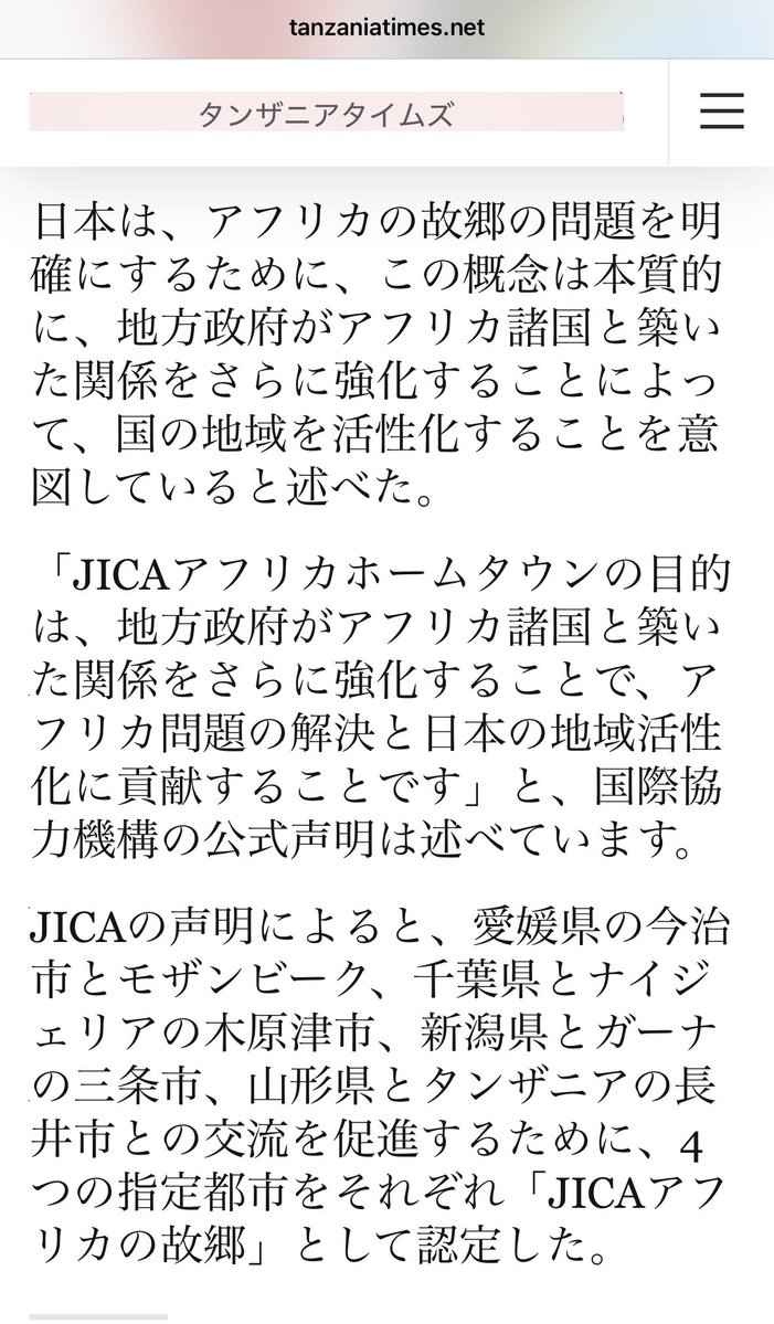 JICAがタンザニアのホームタウン計画を強化するってマジか、アフリカ移民騒動の後にこういう発表ってなんか意味深だな。