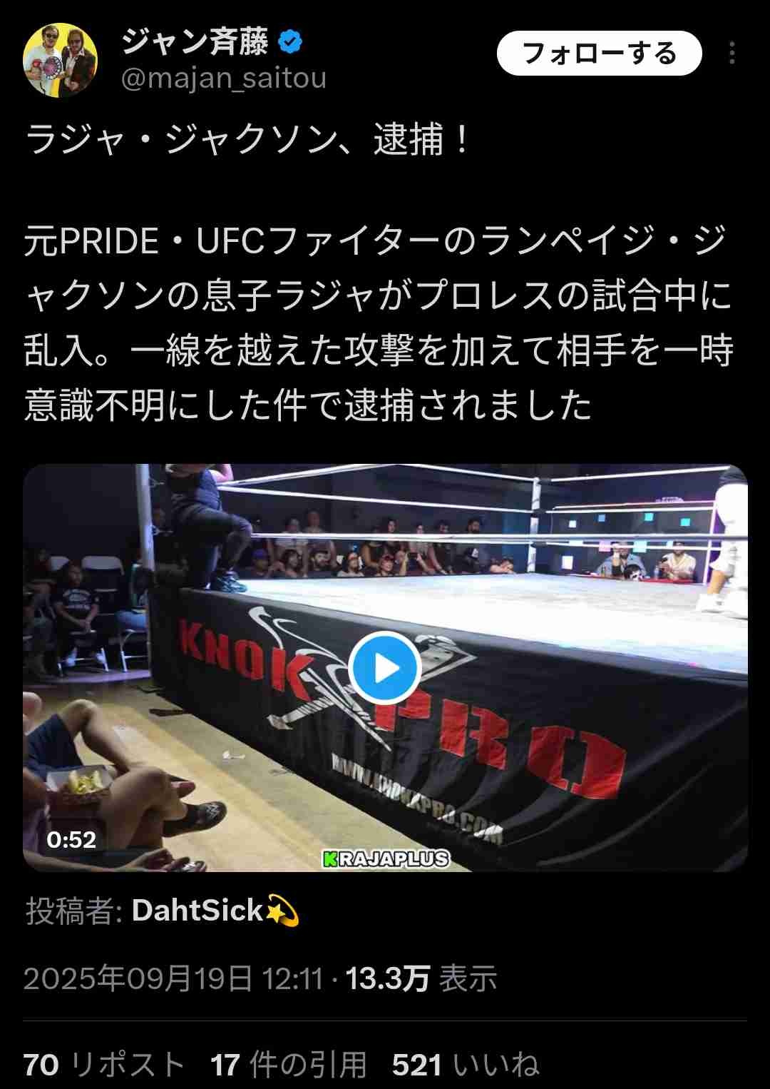 缶で殴ったレスラーは謝罪はしたけどランペイジ息子は許せなくて乱入時に過剰に殴り続けた