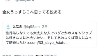 嫌儲 女「性行為しなくてハグしあうだけの男と結婚したい」11万いいね