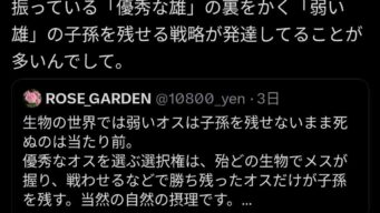 嫌儲 女「自然界なら弱者は子孫すら残せない」学者「むしろ自然界では陰キャチー牛でも隙間セクロスしとるぞ」