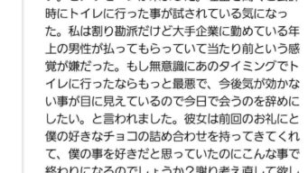 嫌儲 45歳オジ「2回目のデートで毎回僕が払うのは理不尽と思い会計時にトイレ行ったら連絡が無くなった。助けて」