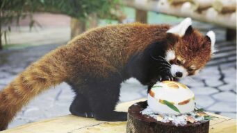 白浜アドベンチャーワールドでパンダに特製氷ケーキをプレゼント