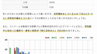 嫌儲 【衝撃】「社内不倫」を経験したことある奴 4分の1(約25%)