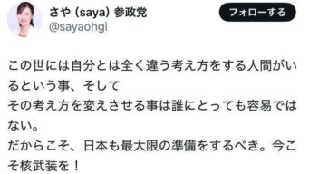 嫌儲 さやママ「世の中には自分と異なる考えの人がいて、それを無理に変えることはできない。だから核武装するしかない」
