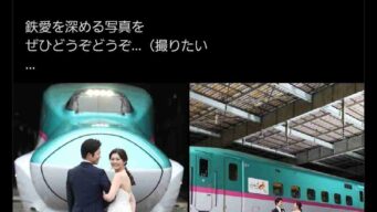 嫌儲 JR「いい夫婦の日📸」電車アイコン「!!!(シュポポ」