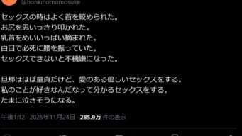 なんG 元カレには散々首絞められたり乳首噛まれたけど、童貞の今の旦那は優しくて泣きそう