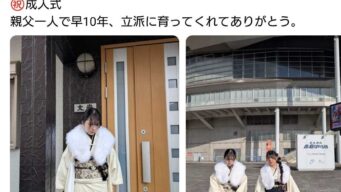 【画像】シングルパパさん、娘の成人式を祝い感無量
