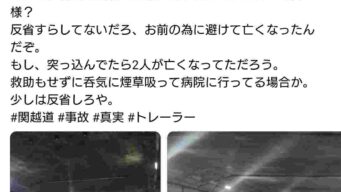 なんG 関越道の死亡事故 事故を引き起こしたカップル、救助もせずに喫煙して大炎上