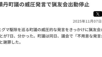 嫌儲 猟友会「町議から謝罪があれば積丹町に即出動します」