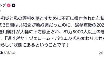 嫌儲 トランプ「雇用統計は操作され、共和党と自分を貶めるために使われた。2024年の選挙でも数字を後から大幅修正、完全に詐欺!